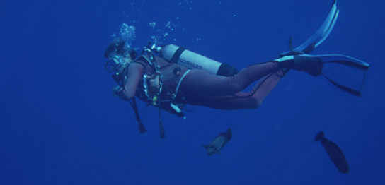 まるで宇宙遊泳をしているような浮遊感覚を楽しめるのもダイビングの醍